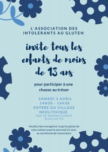 El curso está organizado, en francés, por la Sra. Kucharski, dietista, nutricionista y pastelera. Está a cargo de las clases de cocina con AFDIAG y la producción de cocina y pastelería sin gluten no tiene secretos para ella. Visite su sitio para descubrir sus recetas. Número limitado de lugares, detalles de ubicación y precio seguirán. Debido a la epidemia de coronavirus, el curso se cancela y se reprogramará en 2021.